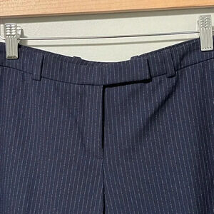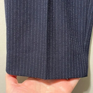 Excellent condition. Midnight blue pinstripe. Zipper fly with button & hook closure. Belt loops. Front functional pockets.
