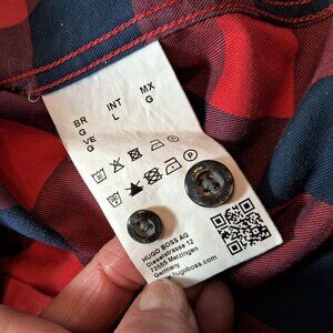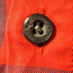 Boss Hugo Boss long-sleeved button-down check shirt. "Boss Hugo Boss" lettering embroidered on the back and on the buttons.