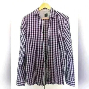 men's gorgeous multi color button down shirt in like new condition, with extra button on the inside. worn a few times and kept with care, from a smoke free pet free home.