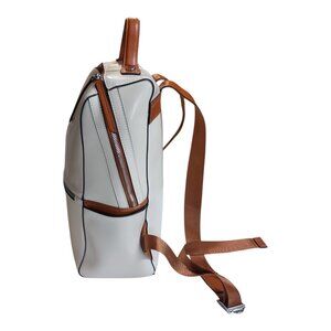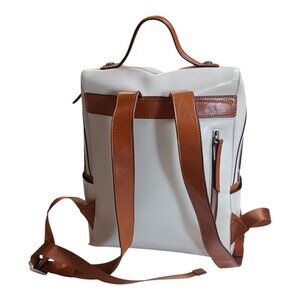 Bostanten backpack, ivory leather backpack, brown trim bag, adjustable strap backpack, NWOT leather backpack, everyday luxury bag, designer-inspired backpack