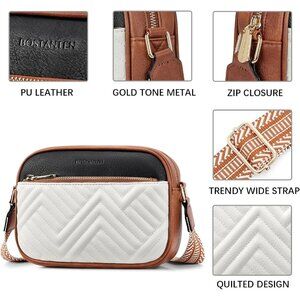 Bostanten Women Black With BrownPU leather Quilted Crossbody Bag With Wide Strap
