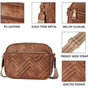 Bostanten Women Brown PU leather Quilted Crossbody Bags With Wide Strap
