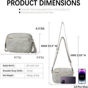 Bostanten Women Grey PU leather Small Quilted Crossbody Bags With Wide Strap