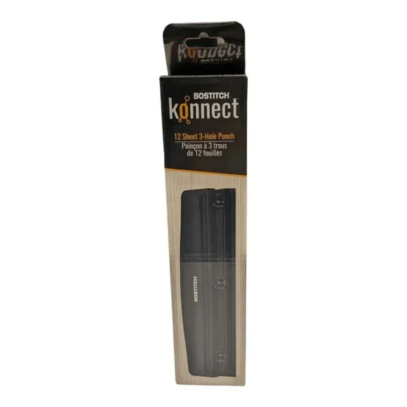Bostitch Office 3 Hole Puncher Durable Metal Rubber Base -12 Sheets - Black