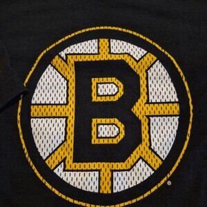 Boston Bruins boys size 18/20 black short sleeve shirt printed logo VGUC