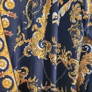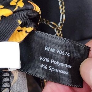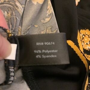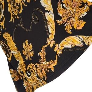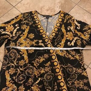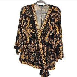 Boston Proper Black Gold V Neck Faux Wrap Bell Sleeve Top Size XL
