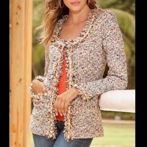 Boston Proper Colorful Tweed Fringe Jacket