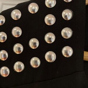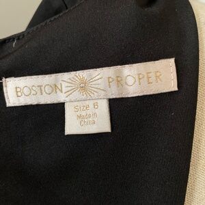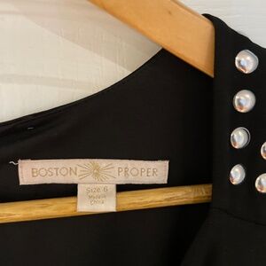 Step into sophistication with this gorgeous Boston Proper dress, where style meets comfort effortlessly. The 3/4 sleeves provide the perfect balance, while the stretchy fabric ensures a fit that moves with you. Adorned with studded shoulders for a touch of edge and flattering ruching to accentuate your curves, this “little black dress” is a wardrobe essential for every occasion.