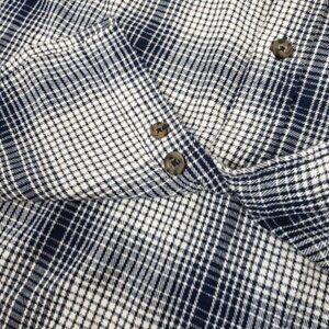 Vintage Shirt 100% Cotton Flannel Button Down Navy Blue Checkered Long Sleeved
