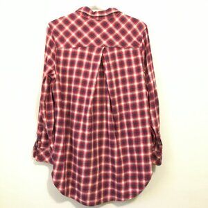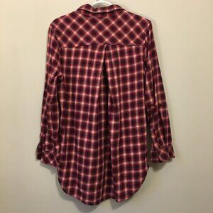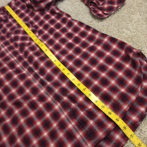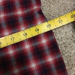 Very good preowned condition, red, blue, and white plaid, cotton button down shirt by Boston Traders. A closet staple that pairs beautifully with jeans. Longer fit.