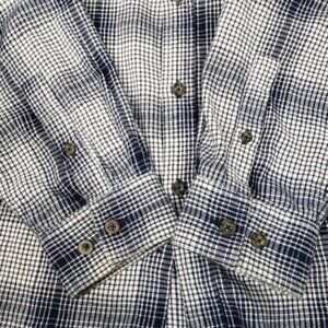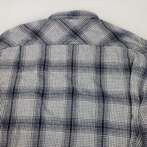 Vintage Shirt 100% Cotton Flannel Button Down Navy Blue Checkered Long Sleeved