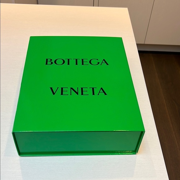 Botteha Veneta beautiful sleek green box with bold branding. Ideal for organizing or showcasing. 13” x 17”
