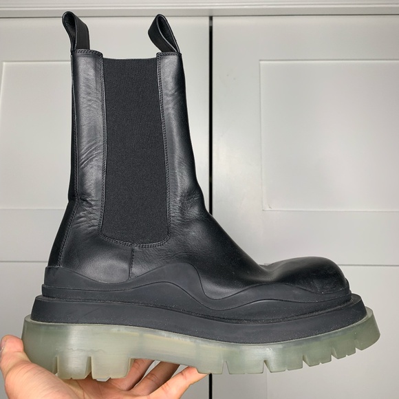 Bottega Veneta Tire Lug Leather Black Chelsea Boots