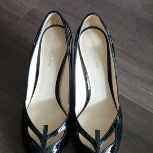 These are black patent leather cut out pumps in a size 36 (US size 6).