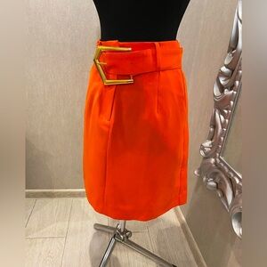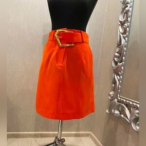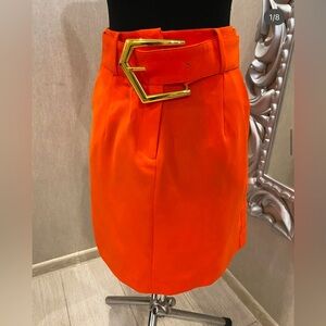 Make a statement with this vibrant orange skirt, featuring a bold belt for added style. Perfect for any occasion.