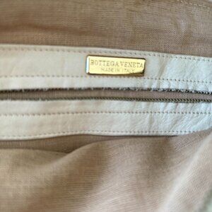 Bottega Veneta woven canvas crossbody bag, with leather trim. 10.5" x 9".
