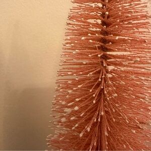 Set of 3 bottle brush trees. Pink with “snow” glitter on the branches of the trees. Wire trunk that connects to a circular wooden stand. Adorable for a child’s room or as part of a center piece. The tops of the trees are a bit worn, as seen in the listing photos.