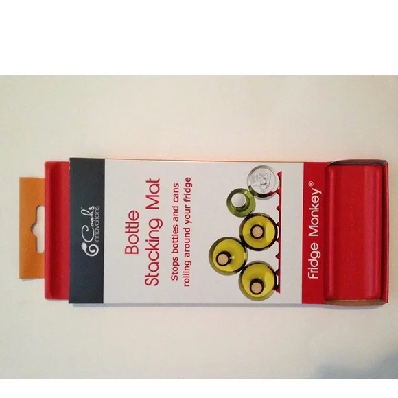 bottle stacking mat in red. Designed to stop bottles and cans rolling around your fridge. Simple, durable design for organized storage. Easy to install and clean.