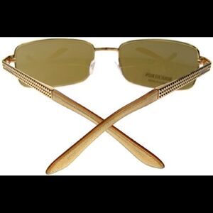 Small frames are coming back from all brands. Featuring exclusive gold plated frame with temples and logo details. Wrap-around Rectangle shape frame.