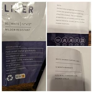 NWOT Bouclair gray scale cloth shower curtain with 12 silver grommets. New high quality Liba USA liner with paper packaging.