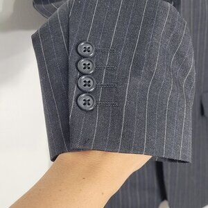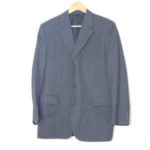 Bouet Men's Black Gray Pinstripe 100% Wool Blend Pockets Button Up Blazer Size 40