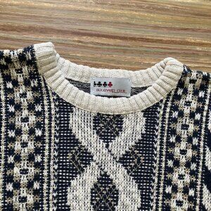 Boulevard Club Textured Knit Pullover Sweater Vintage 90s Blue/White Pattern