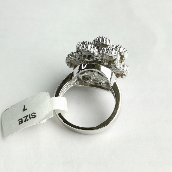 Bouquet of flowers CZ spinning ring 14k white gold overlay Size 7