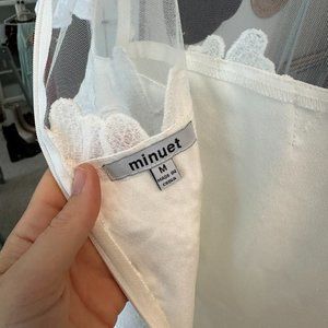 Would be a perfect bridal shower or rehearsal dress. Only worn once and has been dry cleaned. Size medium. Fit me slightly big so I bought a white ribbon to go with it as a belt, so would say fit true to size.