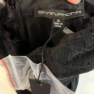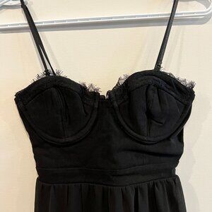 Boutique 1861 strapless black dress with lace trim bustier and sheer overlay skirt - perfect for formal events!