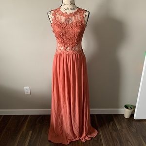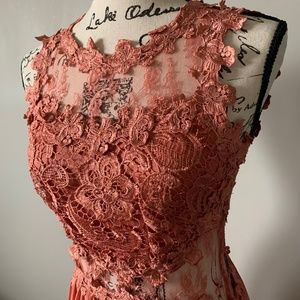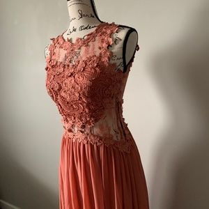 This was my prom dress, which I sadly only got to wear once and I am sad to see go. I got this at a boutique in Toronto, so it was a very special find. It is a timeless, elegant gown. The flowers and the lace make it so classy.