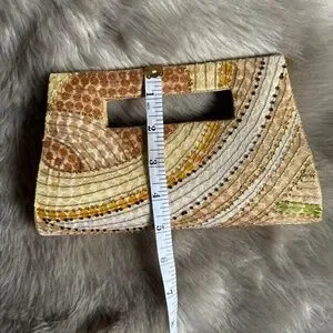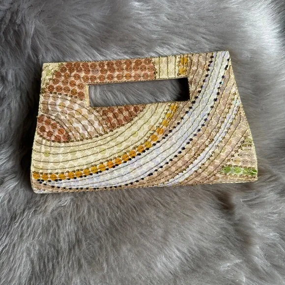 Very cute and practically new without tags. Hint of colour goes with everything as it contains neutral beige, brown, creams, and a hit of green and black. Gives a sparkle touch when lights reflects on it! very elegant for a night out or for a special occasion!