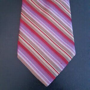 Bovet 100% Silk Diagonal Stripe Tie, Taupe, Maroon Red, Mauve & White
