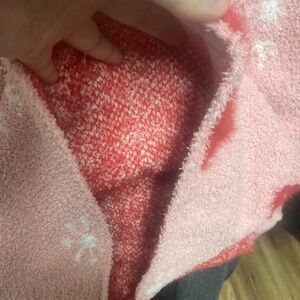 Pink blanket with red bows. The red bows are diff material. Tried to show in picture. Brand new never been used. All transparency. The blanket was 39.99 from winners plus tax which is 46 dollars. Poshmark takes 20 percent. So please send reasonable offers. Just looking to get what I paid. Thank you!
