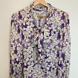 bow-tie collar, wide cuffed balloon sleeves, below-the-hip length