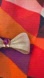 Bow Tie Pin with Purple Lucite Cabochon Jewel in Gold Tone Mesh