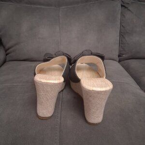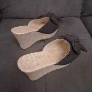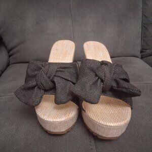 NKOOGH Black Wedge Sandals for Women Women Sandals Fashionable Denim Flower Decoration Summer New Pattern Wedge Comfortable Non Slip Slip On