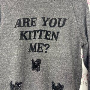 Bow & drape New York sweater are you kitten me with sequin bling embroidery