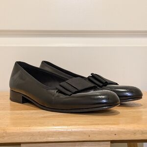 Bow-Tie 6 1/2 Men's Leather Loafers with Black Bows and Skull and Crossbones