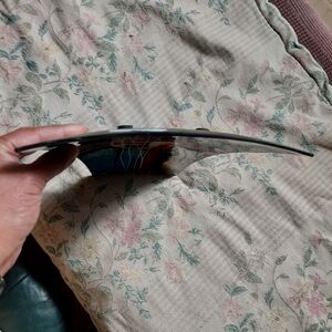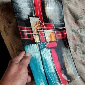 Rectangle shape art glass plate but wider at one end and narrowing to other. Bows slightly in the center. Lovely piece as a display dish or mounted on the wall. Approx 14" x 8.75" x 6.25".