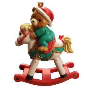 Boxed Vintage 1993 “Baby’s First Christmas” Bear on Rocking Horse Ornament