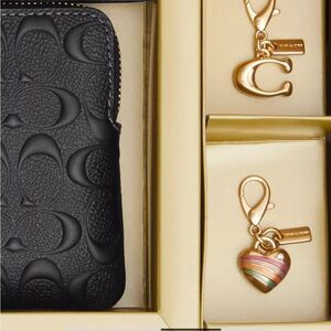 Boxed Corner Zip Wristlet In Signature Leather Embossed Coach Key Chain Charms