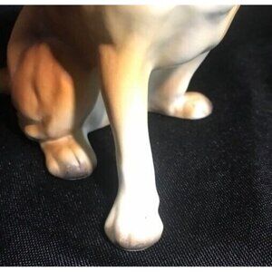 Boxer Dog Figurine Brindle Tan With Collar Vintage Japan Ceramic 5 3/4" Tall