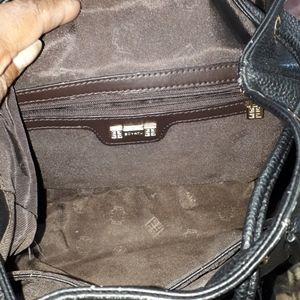 Very roomy and chic back pack. Four pockets on the outside and 3 on the inside. Gently used but still in great shape. Much sturdier than most back packs.