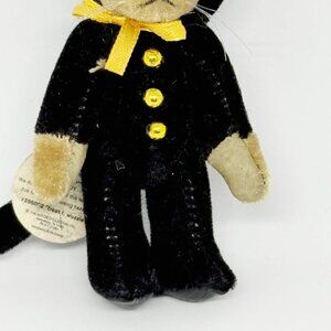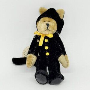 This is a 3 inch miniature teddybear made by Boyds Bears in collectible condition with the original hangtag. On his tag it says he is Treat F Wuzzie. Style # 596002. His legs and arms are jointed so they are moveable but not his head. The black cat costume head piece can come down but the entire costume is not removable. He has whiskers! Perfect for Halloween or anytime. He is harder to find. It is from a smoke free home.