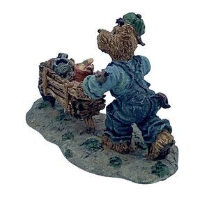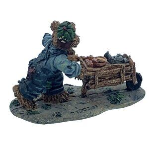 This delightful figurine from the Boyds Town™ Village collection features “Timmy Ray,” a hardworking bear pushing a wheelbarrow filled with supplies. Created in 2000 by TBC, this highly detailed piece is perfect for collectors of Boyds Bears or whimsical miniature village decor.