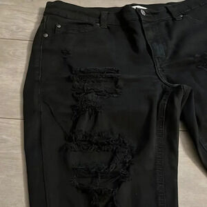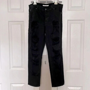 Boyfriend Dark Black Mid-rise Distressed Denim Jeans, Size 11