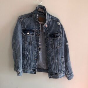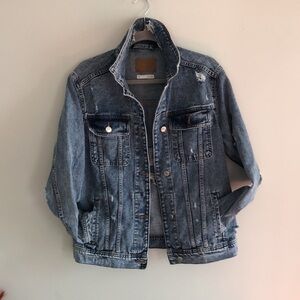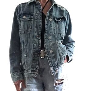 Distressed Boyfriend Denim Jean Trucker Jacket Size M