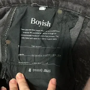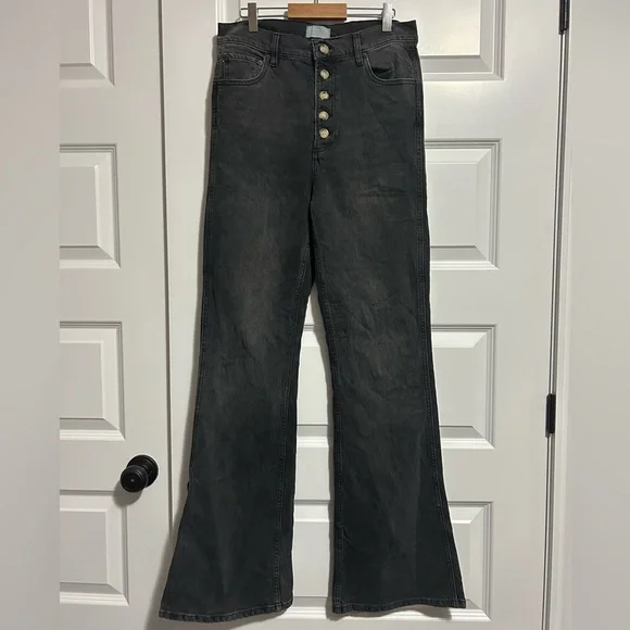 Boyish The Ricky flare leg jeans with a button-up fly and high rise. Comfortable and stretchy. Excellent, gently preloved condition. Faded black/charcoal style wash.