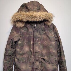 Boys’ Camo Winter Parka – Size 11-12 with Sherpa Lining & Faux Fur on Hood