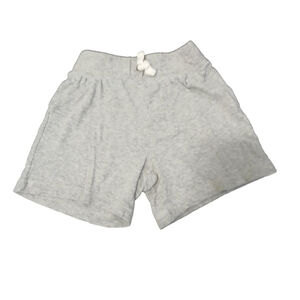 Carter's baby boys'' shorts are light gray, made of a soft cotton blend. They feature an elastic waistband. The shorts measure approximately 7 inches in length and 8 inches in width. The material shows no signs of wear or damage.